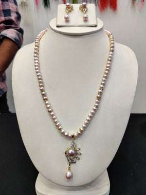 Real Natural Fresh Water Single String Pearl Set With Certificate(D.No ADPRLS1933)
