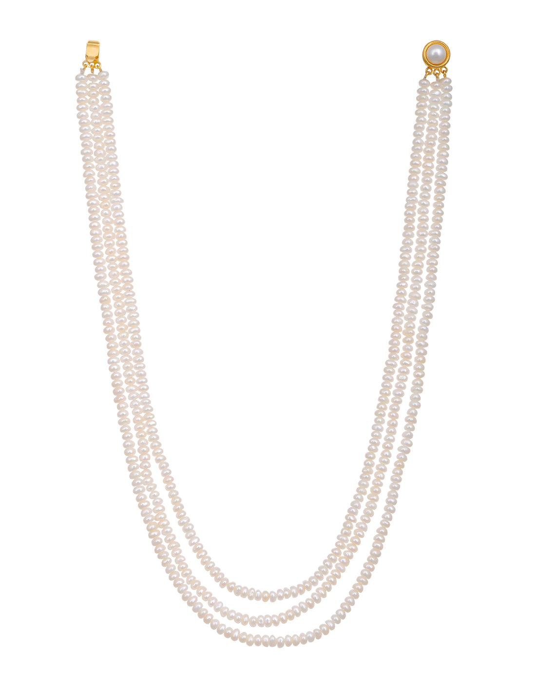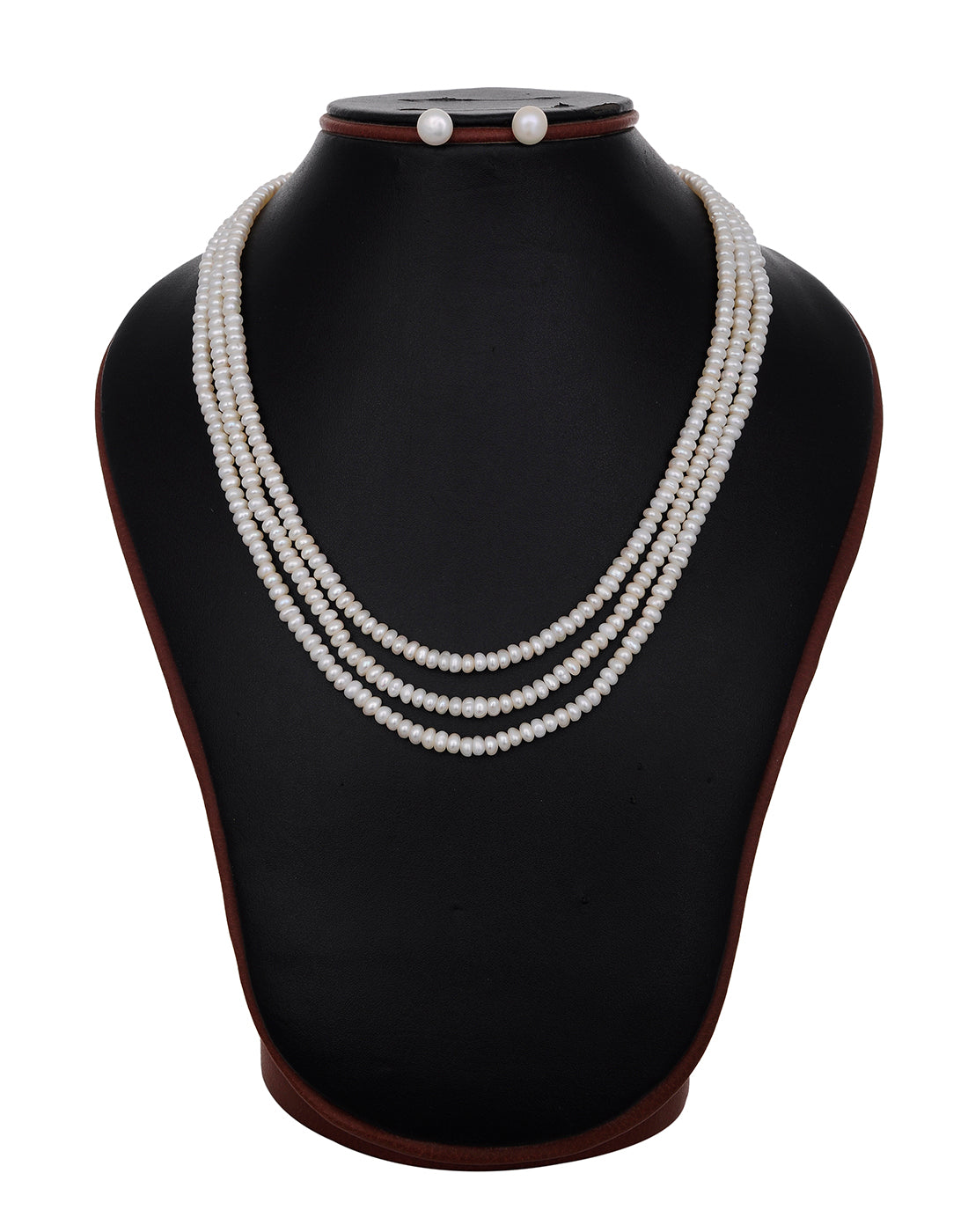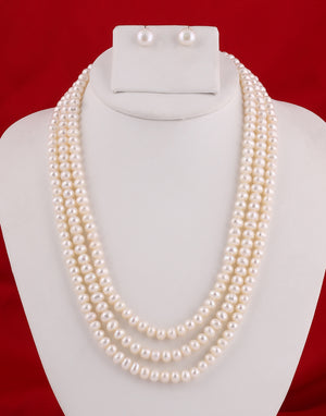 Real Natural Fresh Water Triple Line Pearls Mala Set 5 MM With Certificate(D.No NPS146)