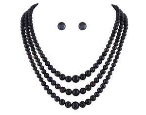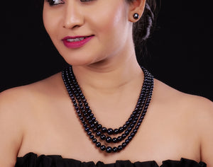 Real Natural Fresh Water Triple Line Plain Black Pearl 4 To 9 MM Graduation Mala Set With Certificate(D.No NPS217)