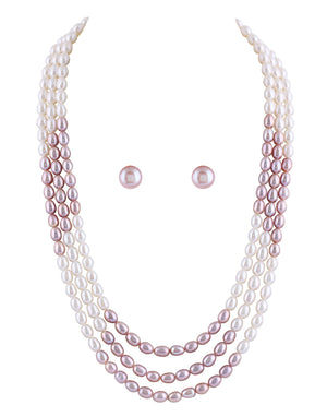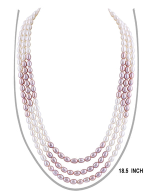 Real Natural Fresh Water Triple Line Plain Oval Shaped Pearls Mala Set 5 MM With Certificate(D.No NPS273)