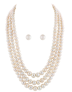Real Natural Fresh Water Triple Line Plain Pearl 4 To 9 MM Graduation Mala Set With Certificate(D.No NPS248)