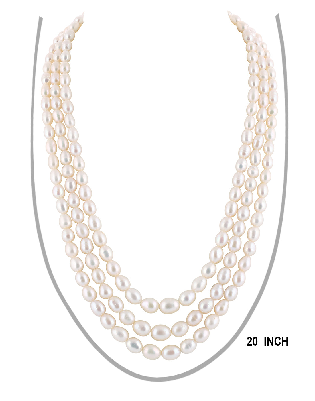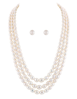 Real Natural Fresh Water Triple Line Plain Pearl 4 To 9 MM Graduation Mala Set With Certificate(D.No NPS253)