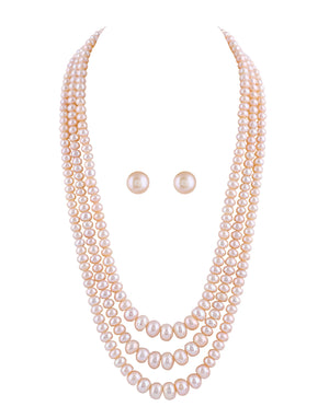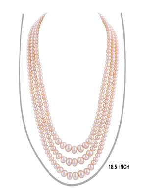Real Natural Fresh Water Triple Line Plain Pearl 5 To 12 MM Graduation Mala Set With Certificate(D.No NPS267)