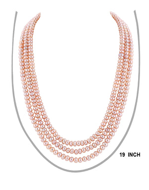 Real Natural Fresh Water Triple Line Plain Peech Colour Pearls Mala Set 5 MM With Certificate(D.No NPS230)