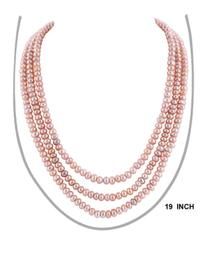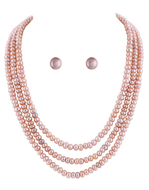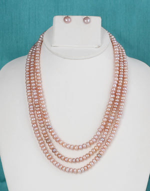Real Natural Fresh Water Triple Line Plain Rose Gold Colour Pearls Mala Set 5 MM With Certificate(D.No NPS233)