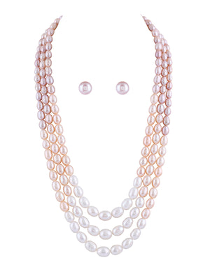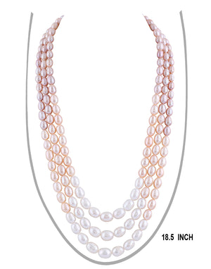 Real Natural Fresh Water Triple Line Shaded 4 To 9 MM Graduation Mala Set With Certificate(D.No NPS288)