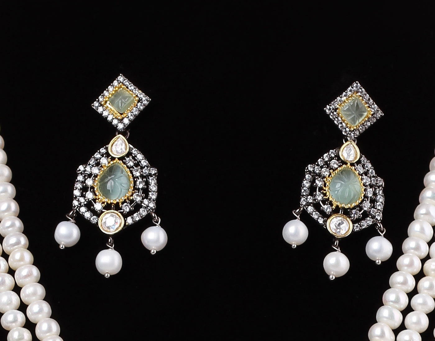 Real Natural Fresh Water Triple String Pearl Set With Certificate(D.No ADPRLS1521)