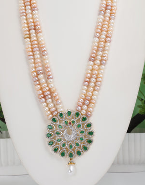 Real Natural Fresh Water Triple String Pearl Set With Certificate(D.No ADPRLS1539)