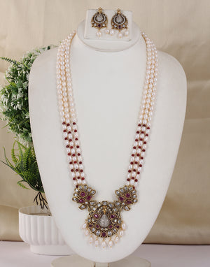 Real Natural Fresh Water Triple String Pearl Set With Certificate(D.No ADPRLS1768)