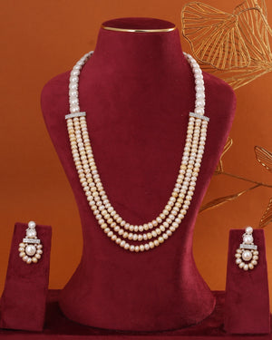 Real Natural Fresh Water Triple String Pearl Set With Certificate(D.No ADPRLS2850)